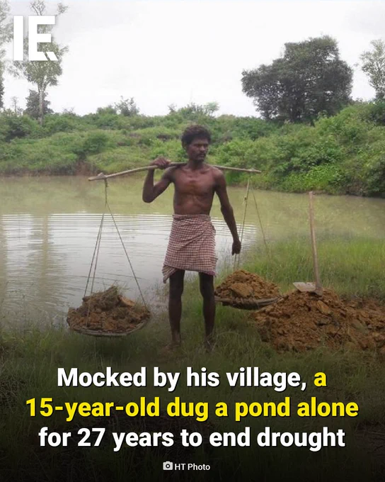 In 1990 a 15‑year‑old tribal boy in Chhattisgarh named Shyam Lal grabbed a spade and vowed to end his village’s drought. For 27 years he worked alone—no help from locals or officials—until he created a one‑acre, 15‑foot‑deep pond that now provides critical water for both people and cattle.