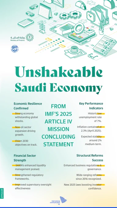 The economic reforms & developments along with the financial sector’s strength are giving Saudi Arabia a global edge, earning the Kingdom the commendation of the @IMFNews. https://t.co/qHtK32CBMp