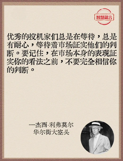 优秀的投机家们总是在等待, 总是有耐心。 等待着市场证实他们的判断。 要记住,在市场本身的表现证实你的看法之前,不要完全相信你的判断! https://t.co/xOzkGtS8ar