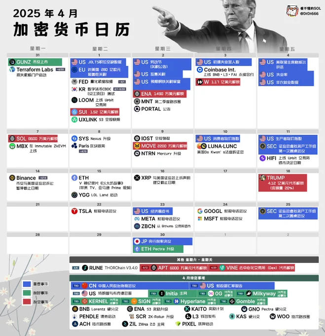 一图看懂币圈4月核心大事件 🟦蓝色为重要事件 🟩绿色为利好事件 🟥红色为利空事件 https://t.co/xbkY11UtnS