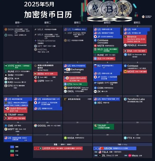 一图看懂币圈5月核心大事件 🟦蓝色为重要事件 🟩绿色为利好事件 🟥红色为利空事件 https://t.co/hzDUUSH42a