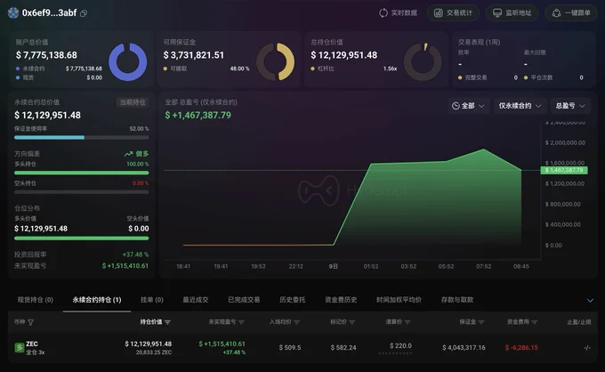 他昨晚以 $4,036 的价格追涨进场 ETH,现在...又挂山顶上了,已经浮亏 $140 万。