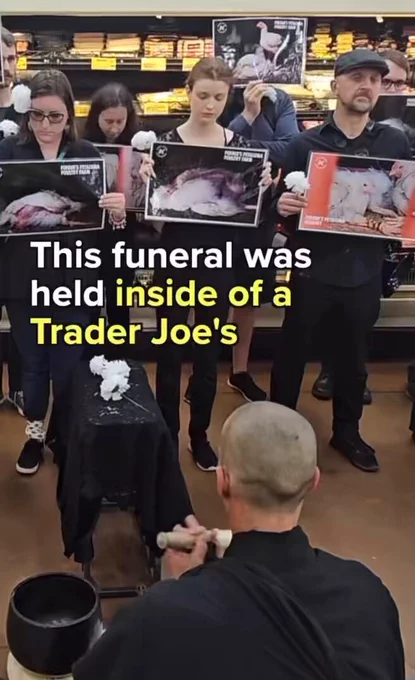 Vegans hold a funeral at Trader Joe's for the chickens in the fridge https://t.co/bAdc5DobTr