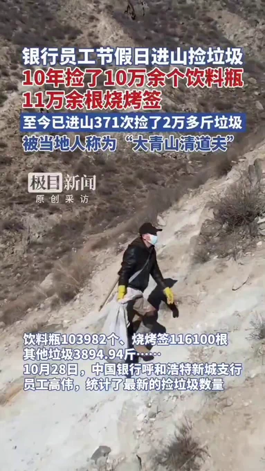 内蒙古一银行员工叫高伟,十来年,一到放假就往山里跑,不是去玩儿,是专门去捡垃圾!