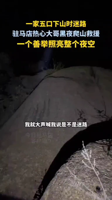 于是他拿起手电进山找人,边找边喊“是不是有人迷路了?”果真有人回应!后来找到了被困在乱石堆里的一家五口,把他们引到正常小路,成功脱险…… https://t.co/B5a1sRvidR