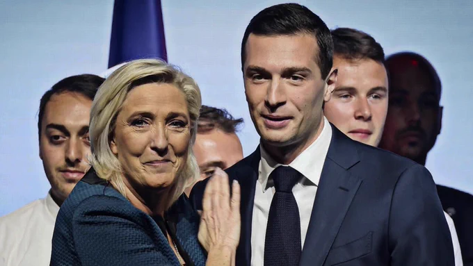 🚨BREAKING: Le Pen's RN Party has smashed their all-time polling record this month, and is now leading Emmanual Macron's party by 18%