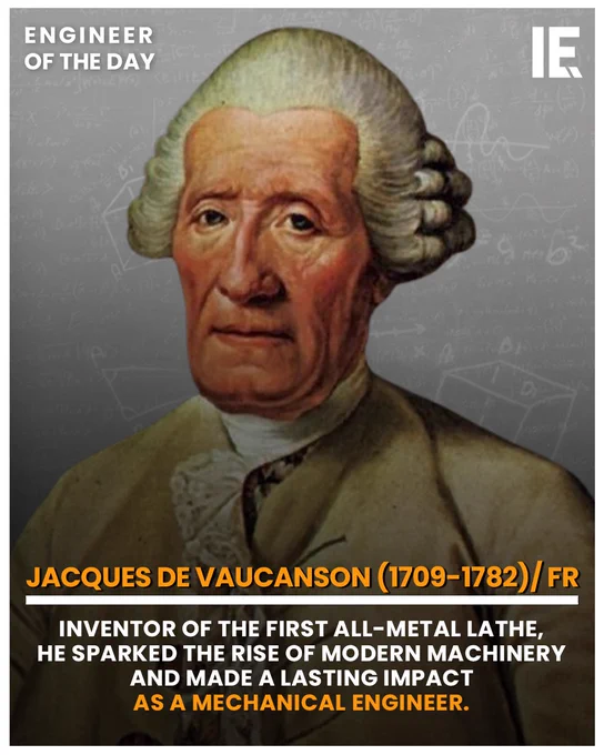 Jacques de Vaucanson built the future with precision. His invention of the first all-metal lathe launched the machine age and paved the way for the tools that powered the Industrial Revolution—and every factory since.