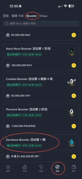 Booster 理财活动第一季。 质押BSC上的USDT即可获得 $ZBT ,基础年化收益约为16%,活动还有9天,据称存5WU以上+绑定钱包邀请码【U0IQXUMC】还有3%收益加成。 入口:币安App—切换至钱包端—下方选择发现—上方选择Booster—下拉找到【Zerobase Booster活动第1期】。 注意:官网显示赎回需要7天,急用钱的慎入。