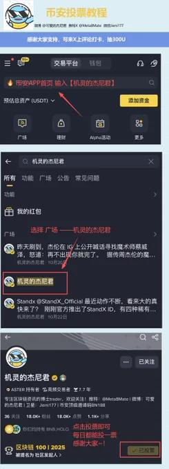 感谢大家的认可 ,杰尼君有幸被提名为 《币安百强创作者·社区发起人》! 🎁 感谢粉丝福利时间: 转发 + 评论区打卡【投票杰尼君】截图 + 留下BN UID 👉 抽 1位幸运用户 × 100U 👉 再抽 10位用户 × 每人20U 活动结束后立刻开奖!~ 投票方式: 在币安App首页搜索「机灵的杰尼君」,进入广场主页,点击“投票”即可,每天都能投一票 。 🔗 投票入口(网页端): https://t.co/5SbZpxKAOA 感谢一路同行的朋友们!祝大家2025年资产翻百倍! #