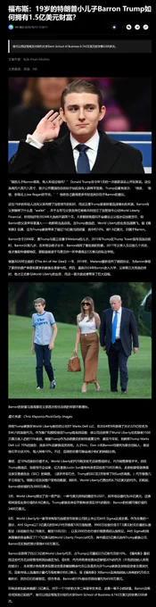 福布斯:19岁的特朗普小儿子Barron Trump如何拥有1.5亿美元财富? 通篇看下来,总结就一句话:《我的总统父亲》。 原文:https://t.co/nwKKw5OqgN https://t.co/XUDJ9x3tWV