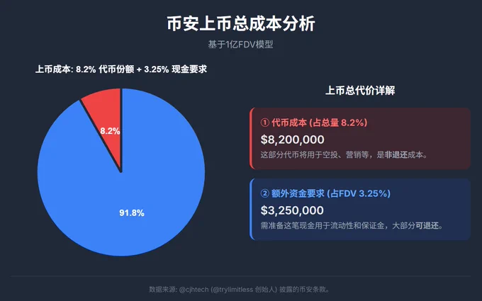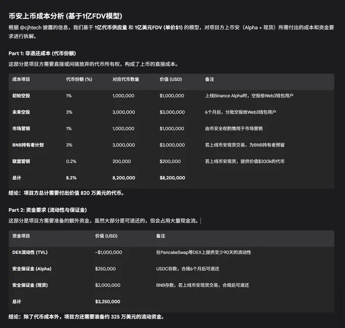 曝光了所谓的币安上币成本(存疑)。 我让