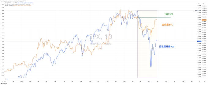 从图中可以看到 BTC 已经回到 2月25日 左右的价格,而标普500 的差距还是很大,如果美股继续修复的话,BTC有可能会继续反弹,对,我仍然认为这是基于宏观修复的反弹,而不是彻底的反转。