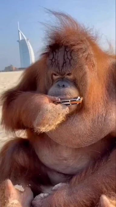 Nothing interesting to see or listen to, just an orangutan playing a harmonica