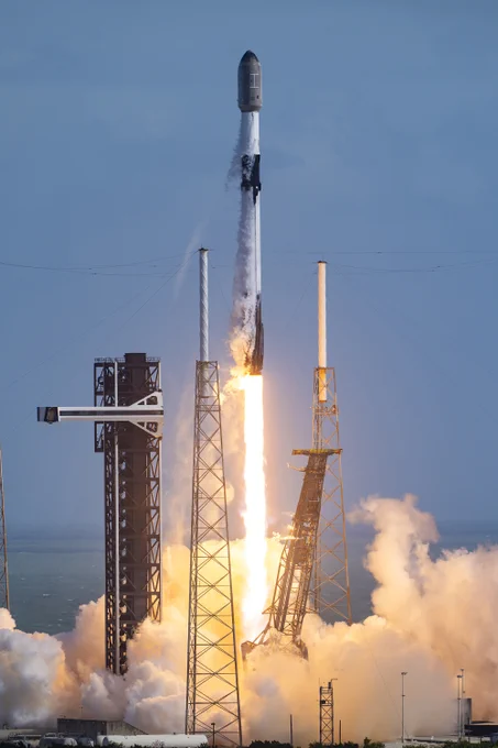 Falcon 9 vertical at pad 40 in Florida ahead of tonight’s launch of the SpainSat NG II mission. Weather is looking good for liftoff in less than one hour → https://t.co/zesgR2e2x5 https://t.co/YhFftSasiF