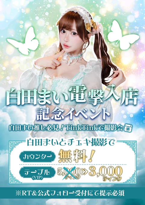と一緒に TinkTinkで撮影会📷 白田まいとチェキ撮影すると… ▶︎カウンター席:3,000円→無料❣️ ▶︎テーブル席 :5,000円→3,000円 白田まいと記念に1枚どうですか?🐰📷 🐰注意事項🐰 ※公式Xフォロー&この投稿を受付にて提示必須 #