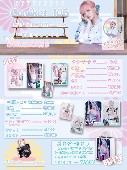 「いざ、夏コミ!」 今週末の夏コミ106に参加します!✨ 新刊「サマーソーダ」とグッズもお持ちしますので、ぜひお立ち寄りいただけるととても嬉しいです!(*≧ω≦) 皆様にお会いできるのを楽しみにしています♡ ٩(˃̶͈̀௰˂̶͈́)و https://t.co/piy7P67Lfv