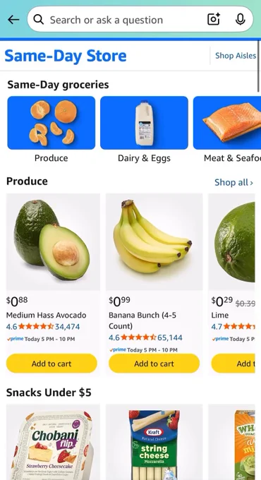 Thousands of fresh groceries are now available for Same-Day Delivery orders in 1,000+ U.S. cities and towns, with plans to expand to 2,300+ by end of 2025. Think customers are going to love being able to add fresh produce, milk, eggs, and more to their everyday Amazon purchases in one cart, delivered within hours.