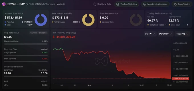 又一知名100%胜率合约大鲸今天彻底陨落了,一周亏掉4480万刀,继续应验币圈那条真理:谁高调赌合约大单,干谁!前有James/内幕哥/麻吉,后有这合约“常胜将军”,