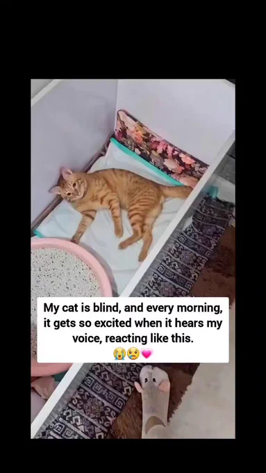 Blind cats reaction to hearing owner 🥺 https://t.co/1VpX2i8FJA