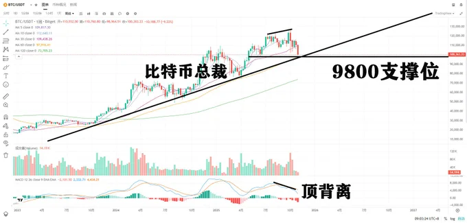 98000是比特币最后一道防线,若能守住行情还有一线希望 #