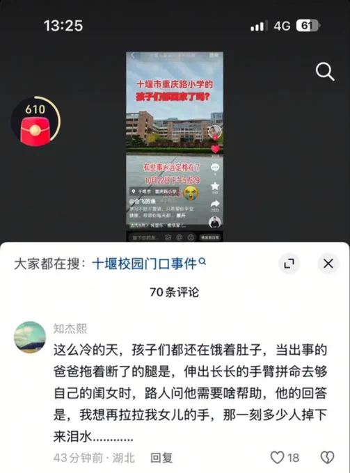 有网友说:现场一片混乱中,朋友呆了片刻就去帮忙了。一个父亲腿都断了,他在伸手,朋友问,你想干什么,他说:我想拉拉我女儿的手,他都不知道女儿已经……