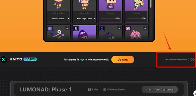 @LumiterraGame 的嘴撸排行榜,骄骄的A8之旅10-9】 可以查到排名前1000的小伙伴。 链接:https://t.co/HKtYd4kpPo 下拉到页面中间,找到Check the Leaderboard。 然后我竟然没有发现我的排名,排名前1000都没有我,崩溃中..... @KaitoAI #Kaito#