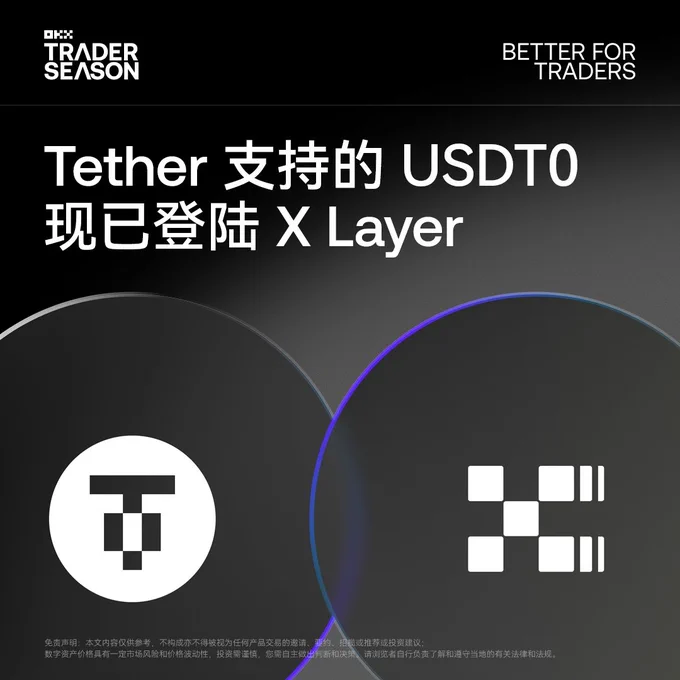 支持的USDT0现已登陆X Layer、OKX交易所及OKX Wallet 以太坊锁仓统一支撑,全链共享流动性 无需桥接,无需流动性池,跨链零滑点 更多信息,详见https://t.co/lpnxaYUl6w https://t.co/x7DLnUCgVT