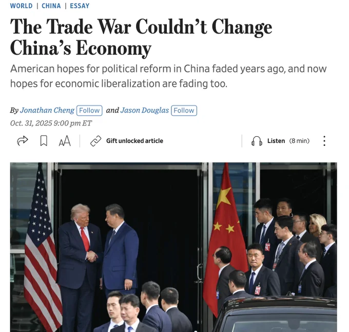 WSJ这篇文章点出了川普政府对华政策的失败之处。
