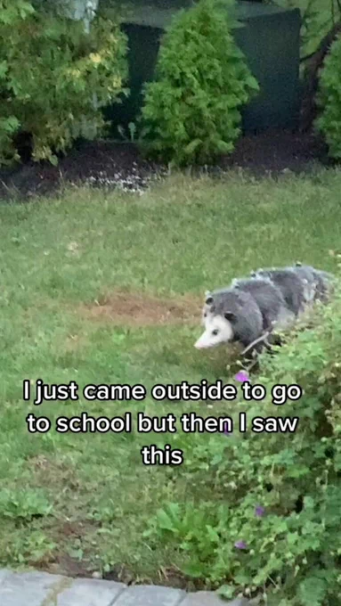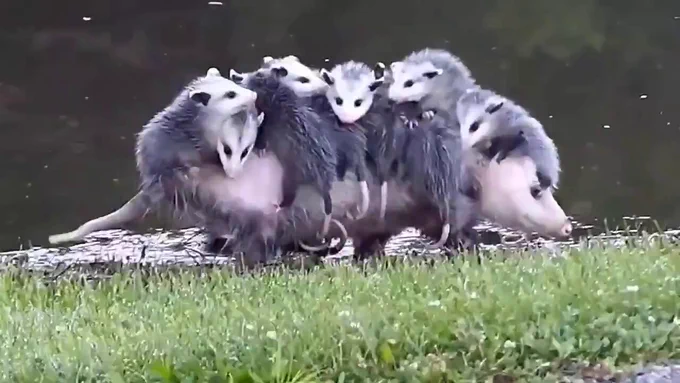 Opossum mother has no babysitters so she takes her kids everywhere she goes