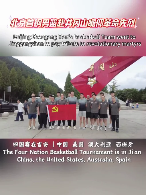 Beijing Shougang The Four-Nation #Basketball# Tournament is in Ji'an,Men's Basketball Team went to Jinggangshan to pay tribute to revolutionary martyrs
