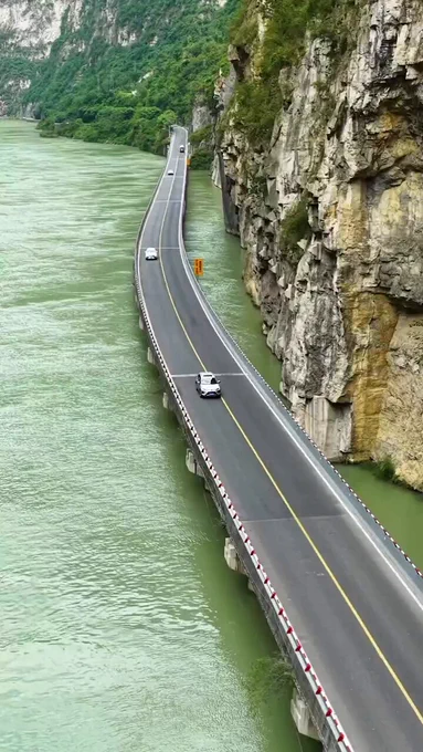 Free for Chinese citizens! This water road, which is off-limits to foreigners, has cliffs on one side and clear blue waves on the other #AmazingChina# https://t.co/kRdwZAna9h
