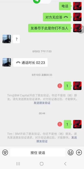谁认识这个tim啊 叫他开朋友圈别拉黑我 我开着录音陪他聊。以前他最怕我录音了。电话都不接。偷钱事件爆发后只让loky帮他回 两个人互相推 或者哪个tim的朋友想赚这个悬赏的 100w u呢啊 找我找我 我包给你提供证据 来赚tim这个loky说的马来西亚做资金盘的福建盘总的100w u以及在jager里坑蒙拐骗的100w u 顺便证明下你们的朋友tim是没做的。证明我是个血口喷人的人 我太欢迎了