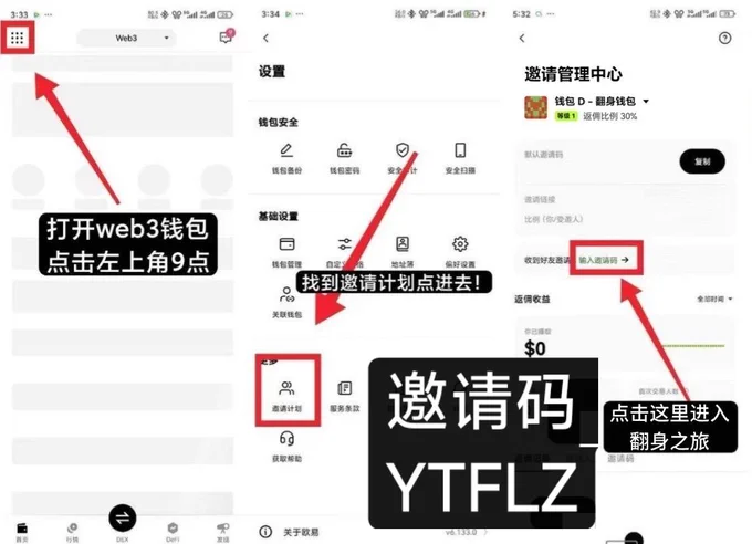 玩bsc链一定少不了 #币安钱包# 已经在使用的老账户也能填 省钱➕无被盗风险(币安钱包和币安交易所是关联) 1.打开币安 App选择币安钱包(图1) 2.钱包首页点 "邀请"→点输入邀请码→复制邀请码 Y30AV3KM 粘贴点确定(图2+图3) 3.我会每周为绑定用户抽奖200u,已绑定的留下你的截图➕BSC钱包地址 https://t.co/Q86iELNH6f