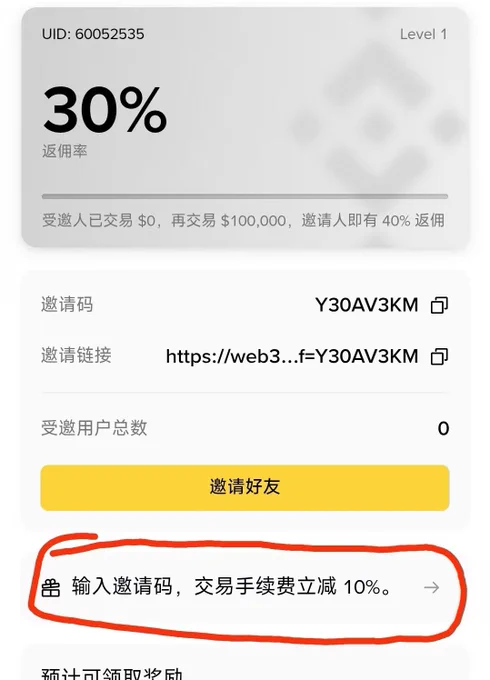 币安钱包——老张送1000u×10人🎁 一键三连即可! 还没绑定币安钱包手续费返还的看过来!(不论新老用户) 币安全球化dex布局大家都看到,币安钱包在未来一定有一个高频使用率! 刷 Alpha 的或用币安钱包的还没绑过邀请码的也可以邀请码绑一下,已经在使用的老账户也能填的,只要你用币安钱包交易就可以享受优惠! 减免 10% 的交易手续费,长期交易的朋友长时间下来也省不少。 怎么绑?在币安 App 钱包首页点 "邀请"→点输入邀请码→ 复制邀请码: Y30AV3KM 输入邀请码:Y30AV3KM 或连梯子直接点邀请链接网页登陆币安账户直接绑定: https://t.co/ohYSWoTszg