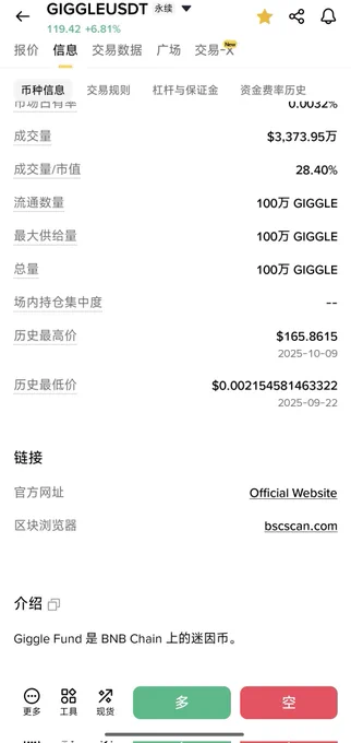 代表giggle社区反馈一个问题 在币安app上关于 $giggle 的币种介绍是否可以更改呢?它的确是bnbchain上的模因币,但它的慈善叙事并没有在介绍处显示出来,点了反馈也没有相应的代码,求个反馈渠道。 @cz_binance @heyibinance @yayabinance @BNBCHAINZH https://t.co/GpLrv5qrBF