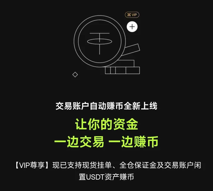 币圈理财哪家强 欧意定把大旗扛 #OKX# 只要你是OKX 的VIP会员 你就可以体验到超过20%年化的理财产品 交易账户 💰自动赚币💰 让你的仓位不再躺平 让你的资金不再闲置 被动增加收益 赚币生息,省心省力 不限制交易,不改变交易习惯 产品的优势如下⬇️⬇️⬇️ 🌟USDT无论在挂单中,还是全仓保证金,或是闲置资金,都可以同时获得赚币收益 🌟开启后系统为你自动匹配有借贷需求的客户,将你的自己出借赚取收益,无需复杂操作,躺赢即可 🌟资金不管是借给杠杆用户还是活期借币用户,都是按小时结算利息,实时到账 OKX 的VIP会员门槛还是挺高的 如果能入会,你已经超过币圈90%的交易员 ♨️门槛:账户资金要大于等于10WU,上限额度是100WU 操作流程如下⬇️⬇️⬇️ 1️⃣账号余额超过10UW、确定已经是VIP 2️⃣把USDT转入交易账户,一键开启“自动赚币”功能 3️⃣在开启时,把出借利率参数设置成1%(设置一个低数值,是为了保证资金的效率值) 产品规则如下⬇️⬇️⬇️ ⚡️交易账户自动赚币的资产将用于欧易币币杠杆借币业务和金融活期借币业务 ⚡️赚币资产基于用户的币种全仓权益和主账户剩余赚币限额计算 ⚡️支持的账户等级:VIP 1 - VIP 8 ⚡️支持的账户模式:现货账户模式,合约账户模式,跨币种保证金账户模式,投资组合保证金账户模式 ⚡️支持的币种:目前只支持USDT,未来会考虑开放更多币种 ⚡️主账户赚币限额:1,000,000 USDT 起息额度规则如下⬇️⬇️⬇️ 💰币价 ≥ 1000 USDT,起息额度为 0.0001 💰100 USDT ≤ 币价 < 1000 USDT,起息额度为 0.001 💰10 USDT ≤ 币价 < 100 USDT,起息额度为 0.01 💰1 USDT ≤ 币价 < 10 USDT,起息额度为 0.1 💰币价 < 1 USDT,起息额度为 1 每日 0 点 (UTC+8) 更新币种价格。 自动赚币——一款让资金的效率值拉满的产品,赚币生息的同时,还兼顾交易 这么优秀的产品配得起这么高的门槛 如果你垂涎这款产品,目前还无法达到VIP的标准,不妨把OKX的VIP会员当作一个短暂的目标🎯努力赚钱😉